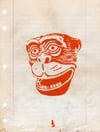 Red Monkey Silkscreen Print on Aged Paper with Free Monkey Sticker - Original Art
