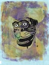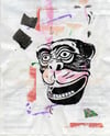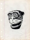 Black Monkey Silkscreen Print on Aged Paper with Free Monkey Sticker - Original Art