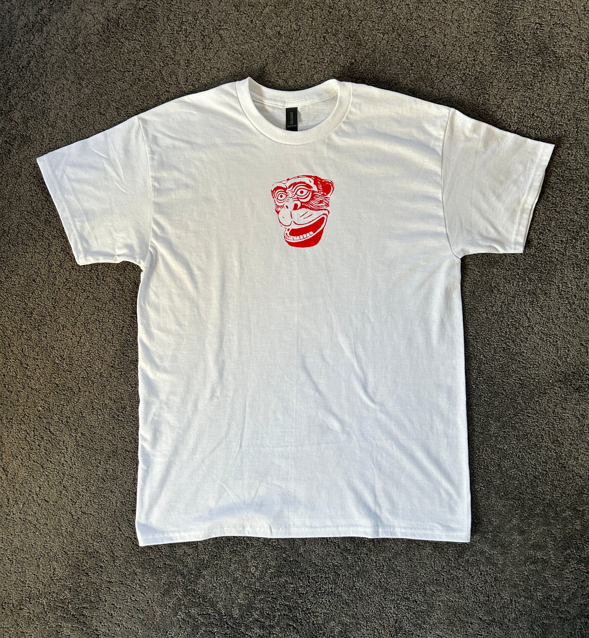 This classic white Gildan tee is rocking a bold, playful red monkey—my own original design, hand-silkscreened by me. Designed as a men’s shirt but made to be worn by anyone, it’s 100% heavyweight cotton for a soft, durable feel. Wear a little mischief.